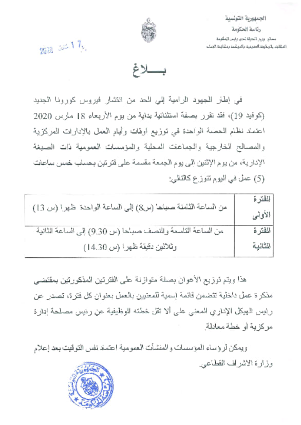 بلاغ حول التوقيت الإداري الإستثنائي