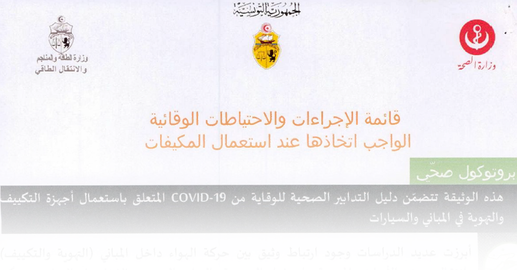 تحميل البروتوكول الصحّي للاتباع عند استعمال المكيّفات الهوائية في المباني والسيارات توقّيا من انتشار عدوى كوفيد 19