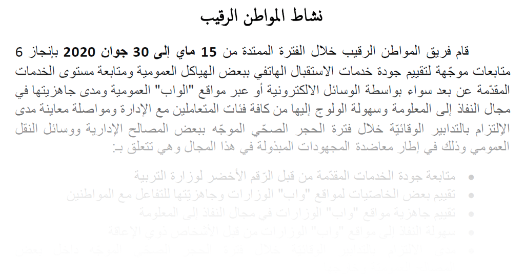 تحميل تقرير نشاط فريق المواطن الرقيب بين 15 ماي و30 جوان 2020